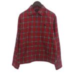 バーバリー ロンドン BURBERRY LONDON 美品 シャツ 長袖 ジップアップ ロゴ 刺繍 チェック コットン 赤 レッド M メンズ