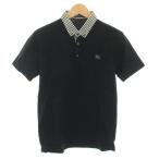 バーバリーブラックレーベル ポロシャツ ボタンダウン 半袖 衿ギンガムチェック柄 ワンポイント ロゴ刺繍 2 黒 白 D1P46-335-09 メンズ
