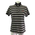 バーバリーゴルフ BURBERRY GOLF ポロシャツ ゴルフウエア ボーダー ワンポイント刺繍 ブラック 黒 M レディース