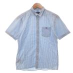 バーバリーブラックレーベル BURBERRY BLACK LABEL シャツ チェック 刺繍 半袖 2 白 ホワイト 水色 /YJ ■YHS12 メンズ