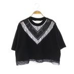 バーバリー BURBERRY レースデザインTシャツ カットソー 五分袖 S ブラック 8071161 /DO ■OS レディース