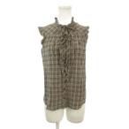 バーバリーブルーレーベル BURBERRY BLUE LABEL シャツ ブラウス 36 茶 ブラウン チェック柄 ノースリーブ フリルネック /AH20