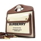 BURBERRY バーバリー 2way ミニ ポケットバッグ ショルダーバッグ ロンドンロゴ レディース ブラウン ホワイト 茶 白 未使用級 正規品
