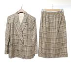 #anc バーバリー BURBERRY スカートスーツ ベージュ 黒 セットアップ グレンチェック ヴィンテージ シルク混 レディース [940807]