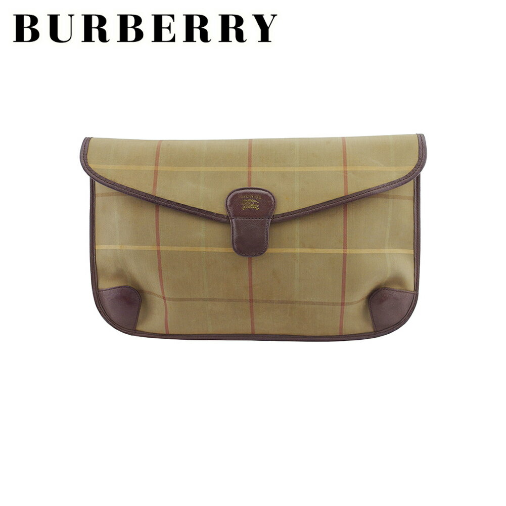 【ブラックフライデー30%OFFクーポン】バーバリー クラッチバッグ ブランドバッグ バック セカンドバッグ ポーチ レディース メンズ ベージュ系 ブラウン キャンバス×レザー チェック l3482 【中古】 ブランド ハイブランド ヴィンテージ 送料無料