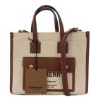 バーバリー BURBERRY スモール フレヤトート ハンドバッグ トートバッグ キャンバス アイボリー ブラウン レディース 中古