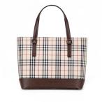 中古 バーバリー トートバッグ キャンバス レザー ベージュ ブラウン ノバチェック レディース 女性