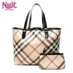 BURBERRY バーバリー ノバチェック チェック柄 トートバッグ ショルダーバッグ 肩掛け キャンバス レザー ベージュ ブラック ボルドー 【中古】