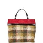 バーバリー チェック ハンドバッグ グリーン レッド ブラック ウール エナメル スエード レディース BURBERRY 【中古】