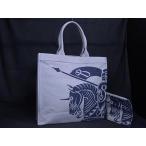 バーバリー ホースフェリープリント ロゴ ハンドバッグ ショルダーバッグ 2WAY ブラック ホワイト キャンバス レザー レディース BURBERRY 【中古】