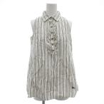 バーバリーブルーレーベル BURBERRY BLUE LABEL ノースリーブブラウス カットソー フリル ストライプ ホース刺繍 36 ベージュ