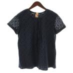 バーバリー ロンドン BURBERRY LONDON ブラウス 半袖 クルーネック レース 花柄 カットワーク 刺繍 40 紺 ネイビー /XZ ■GY99