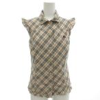 バーバリーブルーレーベル BURBERRY BLUE LABEL シャツ ブラウス フリル ノバチェック ノースリーブ 38 S ベージュ /AE レディース