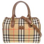 バーバリー BURBERRY ボストンバッグ チェック ベージュ 茶 PVC レザー ロゴ ハンドバッグ トラベル 旅行 鞄 【中古】【送料無料】 bk7384
