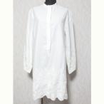 美品 BURBERRY バーバリー フラワー刺繍 バンドカラー シャツワンピース サイズ40 ホワイト レディース 古着 中古