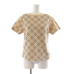 バーバリーブルーレーベル BURBERRY BLUE LABEL カットソー 38 アイボリー ノバチェック柄 ボートネック 七分袖 FA559-159 レディース