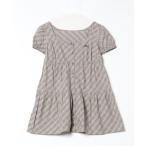 バーバリー ロンドン BURBERRY LONDON フレアワンピース シャツ ひざ丈 半袖 バンドカラー チェック柄 シルク混 36 黒 ブラック