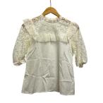 バーバリーブルーレーベル BURBERRY BLUE LABEL ブラウス 半袖 クルーネック レース コットン 55M37-136-02 36 アイボリー レディース
