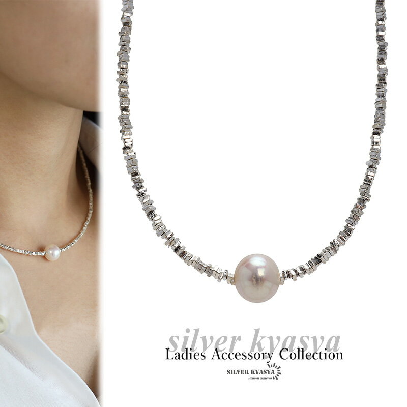 \スーパーSALE 10%OFF 9,900円→8,910円 /淡水パールネックレス 純銀 不揃い 銀塊 シルバービーズネックレス 一粒ネックレス 真珠ペンダント シルバー925