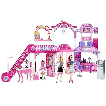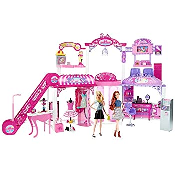 【中古】BARBIE Malibu Ave SHOPPING MALL 50+ Pieces PLAYSET w Working ESCALATOR, FASHION BOUTIQUE, HAIR SALON, FOOD COURT &