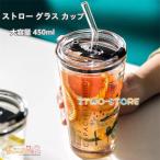 グラスカップ 450ml 耐熱ガラス ガラスカップ マグカップ 透明 ストロー付き 水筒 コーヒーカップ グラスコップ タンブラー 漏れ防止 直飲み