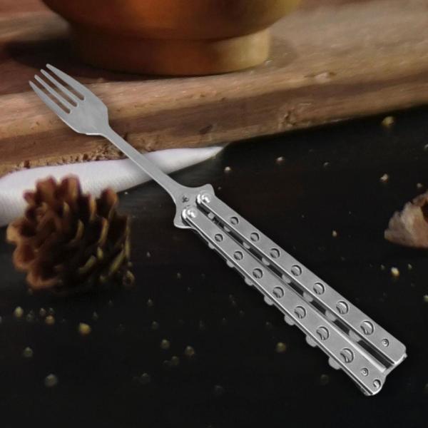 バタフライフォーク 9.06 インチポータブルアウトドア食器バックパッキングバーベキュー狩猟アージェントハンドル