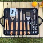 キャンプBBQ道具セット木柄フォークショベル金具付きC&J収納布袋付き焼き道具バーベキュー用品アウトドア調理ツール取付簡単使いやすいまとめ買いに便利