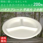 使い捨て皿 エコで丈夫なバガスプレート 平皿大 3仕切り 200枚 バーベキュー パーティー 配膳皿 大き目取り皿 通常ゴミで捨てられる