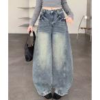 ジーンズ デニム デニムパンツ 「春夏新作」サイド切替えワイドデニムパンツ レディース