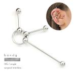 バーベル 2連 インダストリアル ステンレス サージカルステンレス 金属アレルギー ボディピアス 14G 可動式 シルバー ロング 軟骨 インダス