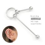 バーベル インダストリアル ステンレス サージカルステンレス 金属アレルギー ボディピアス 14G 可動式 2連 シルバー ロング 軟骨 インダス