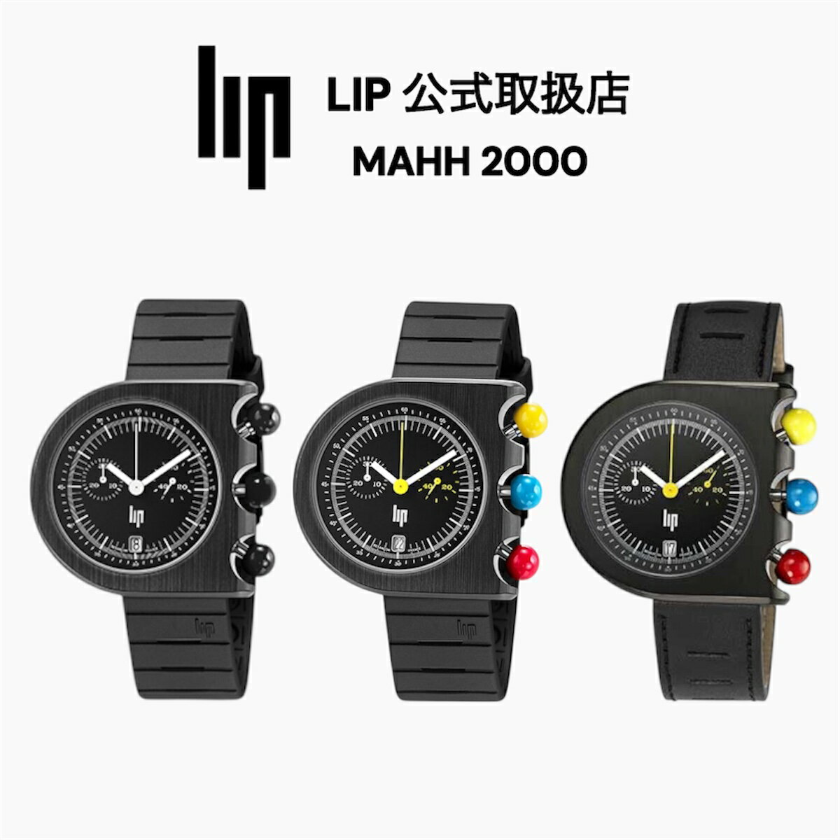 【お買い物マラソン|10%OFF+P5倍】正規品 LIP リップ 腕時計 メンズ〈選べる3タイプ〉Mach 2000 マッハ クロノグラフ ブラック(ラバーベルト|レザーベルト)