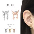 ボディピアス リボン 14G 16G 軟骨ピアス 可愛い ストレートバーベル アウターコンク ヘリックス 片耳用
