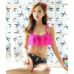 水着 レースフレアビキニ・パイナップル柄ショーツ 水着2点セット レディース