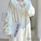 ネグリジェ レディース 秋冬 長袖ワンピース ロング パイナップル もこもこパジャマ ゆったりネグリジェ 可愛い部屋着 ナイトロープ ルームウェア 韓国風 暖かい