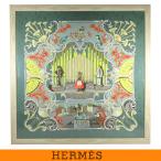 HERMES◆パイプオルガンと機械仕掛けの楽器/カレ90/シルク/CRM/プリント/レディース