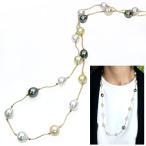 南洋真珠パール 9.4〜12.5ミリ位 大粒 スリーカラー 黒蝶・ゴールデン K14/K18ステーションネックレス ロング /1点もの