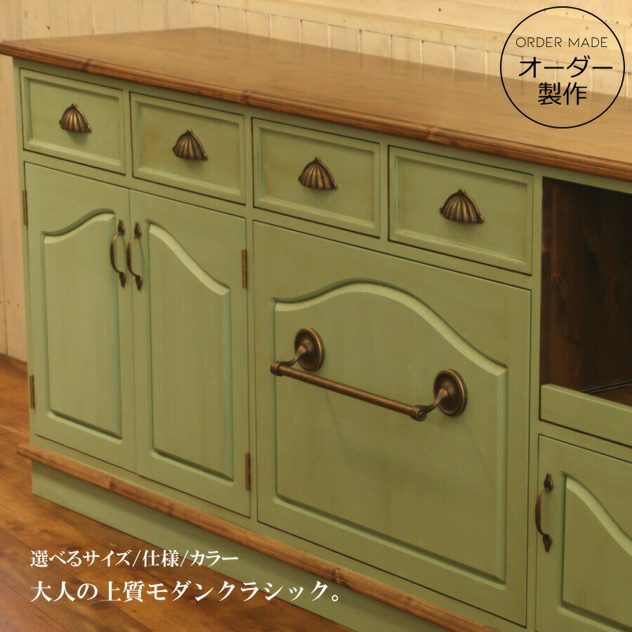 4チェスト クラシック キャビネット W1800 オーダー家具 選べるカラー 収納棚 食器棚 引き出し 収納 北欧 無垢 木製 パイン材 オーダーメイド 完成品 おしゃれ レトロ カントリー 西海岸風 インテリア アメリカンカントリー アンティーク グリーン