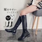 ロングブーツ レディース ブーツ ロング丈 ローヒール フラット ジップアップ 美脚ブーツ 歩きやすい トレンド 痛くない 抗菌除臭 春秋