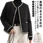 ノーカラージャケット ショート パイビング キルティング ジャケット レディース 中綿ジャケット 薄手 パールボタン 大人可愛い 春 秋 冬 アウター