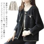 ノーカラージャケット ツイード ミドル丈 レディース 春 秋 ジャケット ノーカラー ツイードジャケット風 カーディガン 白 黒 春アウター パイピン