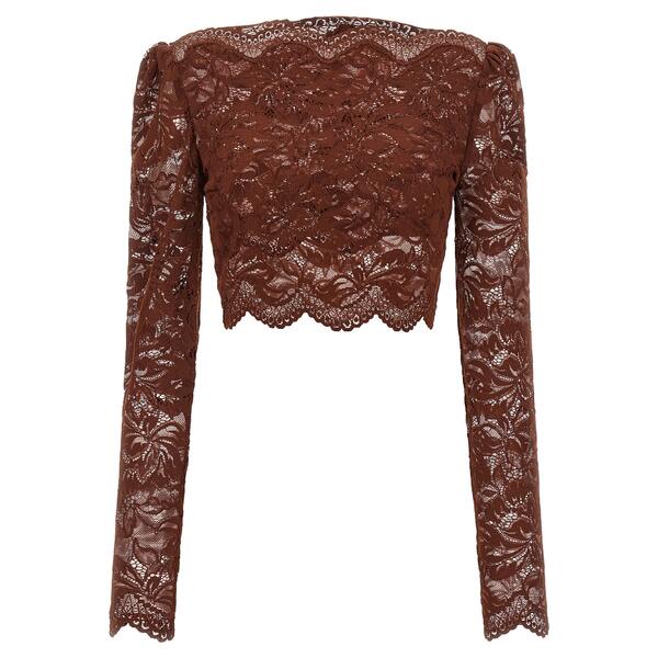 パコ・ラバンヌ レディース カットソー トップス Lace Crop Top Brown