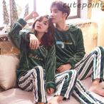 パジャマ カップルペアルック ルームウェア フランネル 冬 ペアパジャマ長袖 パジャマペアルックお揃いレディースメンズ ネグリジェ レディース 単品売り