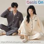 ペア パジャマ カップル ペア ルームウェア 春秋 長袖 長ズボン 前開き パジャマ ペア ペアルック 上下セット レディース メンズ セットアップ パジャマ 大きい