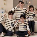 親子ペア パジャマ 長袖 綿100% ストライプ シンプル クマ 親子 ペア パジャマ キッズ 春 秋 ルームウェア ママ 家族お揃い ペアパジャマ ゆったり おそろい親子