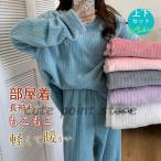 ルームウェア パジャマ レディース おしゃれ 無地 もこもこ 韓国風 寝間着 カジュアル 前開き シンプル ゆったり 上下セット 部屋着