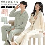 寝巻き パジャマ レディース メンズ 春 秋 前開き 薄手 長袖 Tシャツ 長ズボン 2点セット ルームウェア 上下セット 綿 コットン ナイトウェア