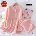 ルームウェア ガーゼパジャマ レディース 二重ガーゼ 綿100% 前開き 長袖 長ズボン 春夏秋 ダブルガーゼ 敏感肌 高齢者 ふんわり 柔らか