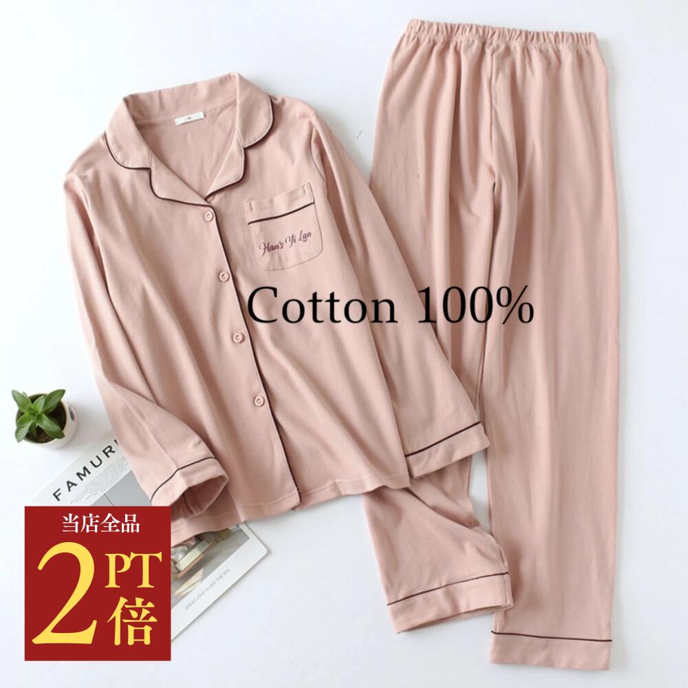 【送料無料】パジャマ レディース 綿100% 前開き コットン 冬用 秋 寝巻き 部屋着 記念日 プレゼント 敬老の日 長ズボン ルームウェア 長袖 無地 ウエストゴム 部屋着 旅館 ホテル 春 ナイトウェア 二点セット セットアップ SY-151