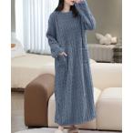 パジャマ ルームウェア 「温活上下セット」ケーブルニット風もこもこフリースルームウェアセット レディース